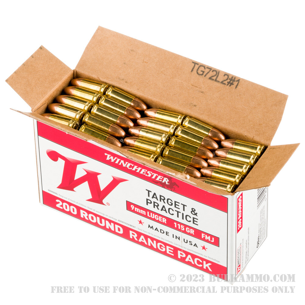 1000 Rounds of 9mm Ammo by Winchester – 115gr FMJ