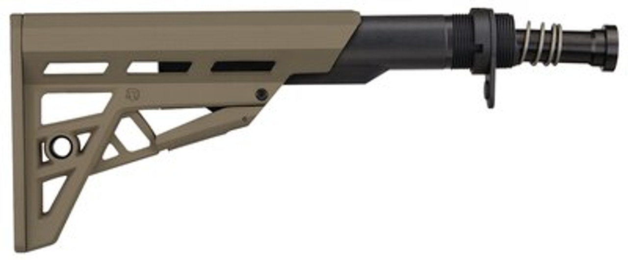Advanced Technology’s AR-15 TactLite Six-Position Mil-Spec Stock comes with a military, flat dark earth finish, 6061 T6 aluminum Mil-Spec buffer tube. This stock features a TrakLOCK System that eliminates horizontal and vertical movement of the stock on the buffer tube, provides smooth and secure stock adjustments, and eliminates the need for secondary locking mechanisms. Also included are a thin Scorpion recoil pad, a dual-sided QD attachment point, a slot for tactical sling attachment, and is made of DuPont extreme temperature glass-reinforced polymer.