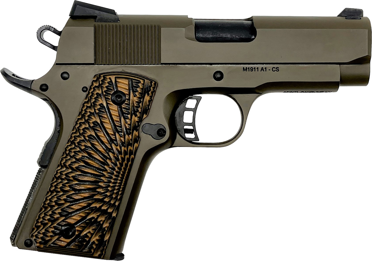 The Rock Officer Style is built in traditional classic 70 series design and delivered with our top quality production and engineering standards. It’s chambered in .45ACP with a 3.5” button rifled barrel supported by a full length guide rod. Smooth, angled, snag-free style allows for quick draw in fast need situations. Includes a low profile angled rear sight along with skeletonized hammer and trigger with adjustable over travel stop and ambidextrous safety standard in the Rock series. Finished with a tough, Patriot Brown Cerakote and comes with G10 Desert Storm Grips. True to all Rock Island 1911s, it comes with a crisp factory 4- to 6-pound trigger, making it a great experience right out of the box.