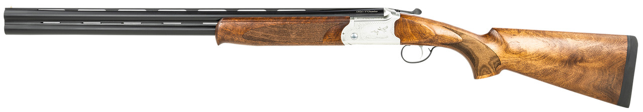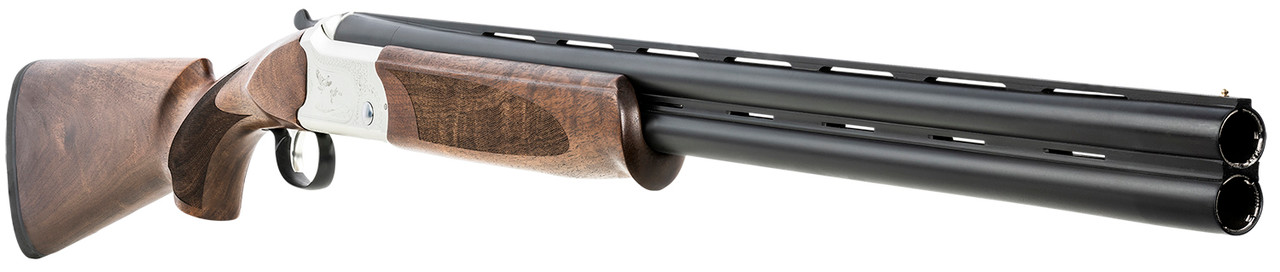 The Cavalry Over/Under are made from light weight high grade 7075 aluminum with an intricate laser engraved design. Featuring a single selective trigger, oil finished Turkish Walnut wood stock, brass bead front sight and auto ejetors. Includes 5 interchangeable chokes.