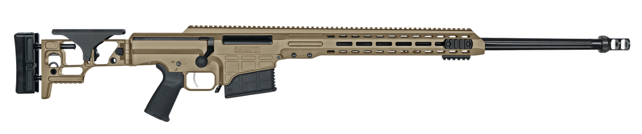Designed with both precision and modularity in mind, the MRAD is equally at home on the range or on duty. Its monolithic upper receiver is machined from 7000-series aluminum, including a full-length M1913 Picatinny top rail with built-in taper for long range precision. With mounting slots at 3, 6, and 9 o’clock, its hand guard offers a rigid, highly adaptable interface for attachment of rails, electro-optics, and other accessories. Featuring a user-changeable barrel system, the MRAD can quickly and easily be converted to one of 8 different calibers or multiple barrel lengths by simply loosening two bolts using a standard Torx wrench; no gunsmith required. Contained within the lower receiver is a fully adjustable match-grade trigger module, allowing the user to easily set their ideal pull. The MRAD stock folds on the right side, reducing overall width for a minimal footprint and ease of transport. When extended, the stock locks securely into place, providing an interface as rigid and stable as any fixed-stock rifle. With tool-less length of pull and cheek piece height adjustment, the MRAD is easily configured to fit shooters of all shapes and sizes. The use of ambidextrous paddle-style magazine release, left/right swappable thumb safety and AR15/M16 pistol grips makes the MRAD perfect for both right and left handed shooters.