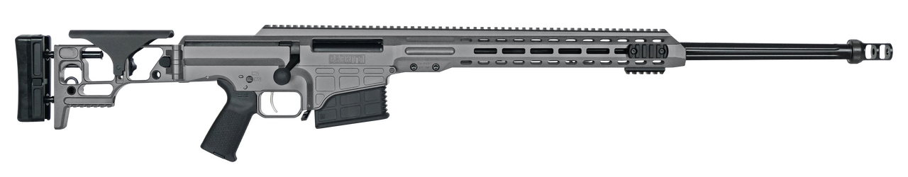 Designed with both precision and modularity in mind, the MRAD is equally at home on the range or on duty. Its monolithic upper receiver is machined from 7000-series aluminum, including a full-length M1913 Picatinny top rail with built-in taper for long range precision. With mounting slots at 3, 6, and 9 o’clock, its hand guard offers a rigid, highly adaptable interface for attachment of rails, electro-optics, and other accessories. Featuring a user-changeable barrel system, the MRAD can quickly and easily be converted to one of 8 different calibers or multiple barrel lengths by simply loosening two bolts using a standard Torx wrench; no gunsmith required. Contained within the lower receiver is a fully adjustable match-grade trigger module, allowing the user to easily set their ideal pull. The MRAD stock folds on the right side, reducing overall width for a minimal footprint and ease of transport. When extended, the stock locks securely into place, providing an interface as rigid and stable as any fixed-stock rifle. With tool-less length of pull and cheek piece height adjustment, the MRAD is easily configured to fit shooters of all shapes and sizes. The use of ambidextrous paddle-style magazine release, left/right swappable thumb safety and AR15/M16 pistol grips makes the MRAD perfect for both right and left handed shooters.