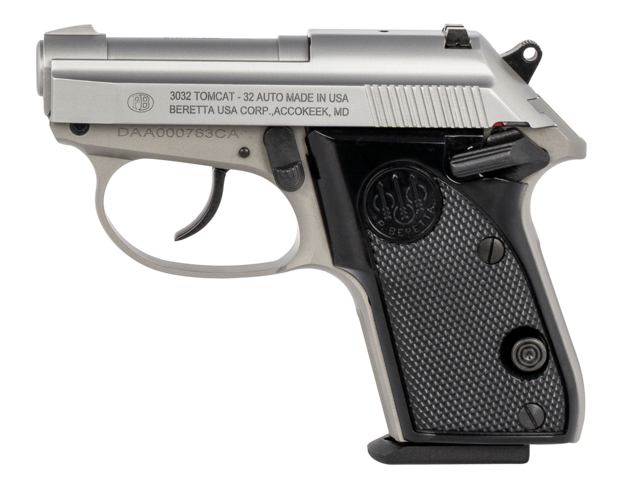 Beretta 3032 Tomcat Inox (CA Compliant) .32 ACP 2.4″ Barrel, Black Grips, 7 Rd Mag
