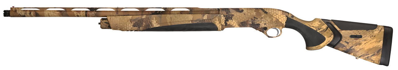Beretta’s A400 Xtreme semiauto shotgun is ideal for upland or waterfowl hunting as well as target shooting. The action gives fast follow-up shots and is equipped with built-in rails, so you can easily mount optics. The unique Blink technology, shoots 36 percent quicker than any other type of semiauto shotgun. Its synthetic stock combines Beretta’s Kick-Off system with an ultra-soft Micro-Core butt-pad, to minimize recoil and is designed to recoil parallel to the cheek mount. The OptimaBore HP barrel’s finish offers superior resistance to the elements, including water, powder, sand and salt spray. The A400 Xtreme Plus features Beretta’s exclusive Steelium Plus barrel, providing the best patterning possible from all hunting loads, along with further felt recoil mitigation. The barrel also utilizes a step rib with an integral mid-bead and fiber optic front bead, and lengthened forcing cones. Its stock features a soft comb, which reduces the felt recoil imparted to the shooter’s cheek even further. The A400 Xtreme Plus also has an enlarged loading port, extended charging handle and bolt release, and Aqua Technology which is a protective coating to withstand the harshest elements.
