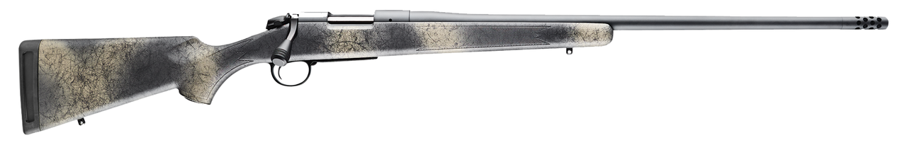 Bergara’s B-14 Ridge Wilderness rifle features an American-style stock with soft-touch finish, Performance trigger, threaded barrel with Omni muzzle brake, and comes with a hinged floor plate magazine.