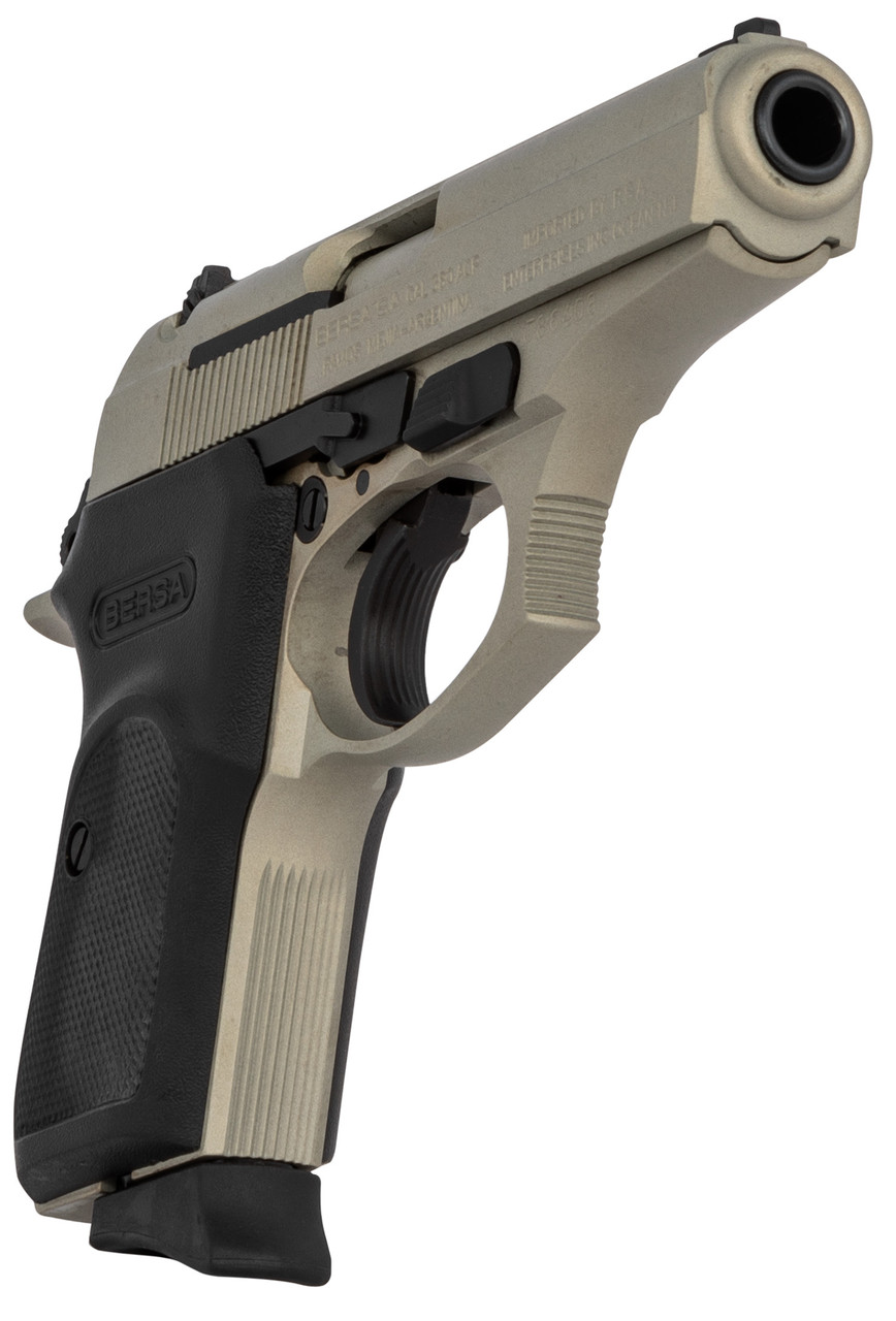 Bersa’s Thunder 380 is ideal for personal protection and offers accuracy, reliability, versatility in a lightweight, compact design. Its aluminum alloy frame has a combat style trigger guard, integral locking system and decocker safety, and a micro-polished bore with sharp, deep rifling. The steel slide features a 3-dot sight system for the prefect sight picture. The Thunder 380 features an extended finger rest on the bottom of the magazine for comfort.