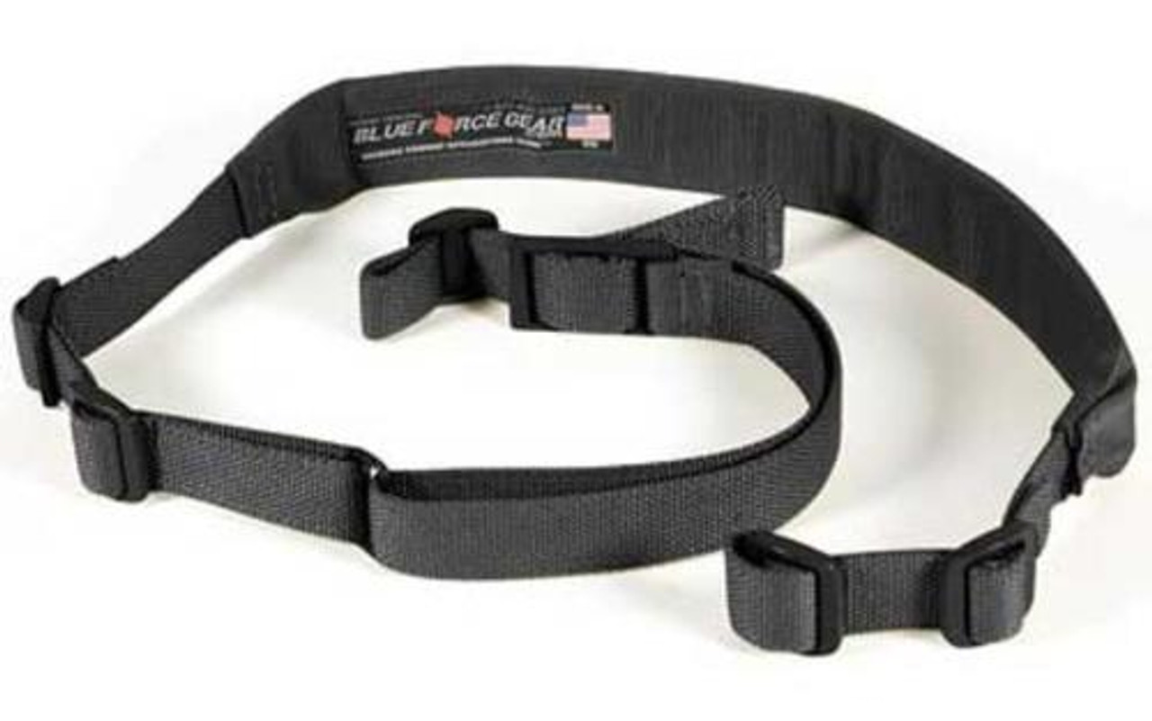 Blue Force Gear Sling, Molded Acetal Adjuster, No Quick Release, Attached with TriGlide instead of Loop Lock, 2-Point Padded Combat Sling, Black