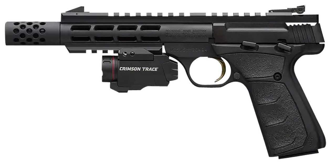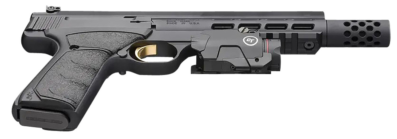 Blowback operated, single-action rimfire pistol with lightweight Vision barrel with aluminum outer sleeve and under barrel rail with Crimson Trace Rail Master Pro Universal red laser and tactical light. Full-length Picatinny optics rail. Pro-Target adjustable rear sight.