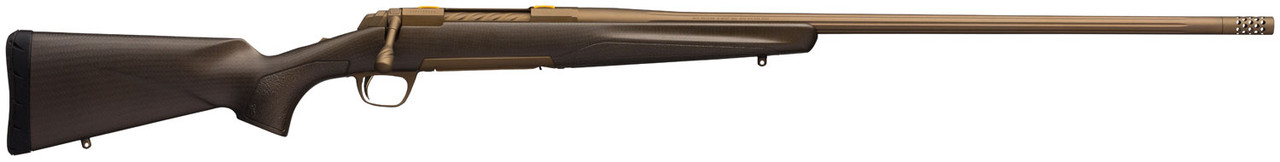 The Long Range version of the X-Bolt Pro, features a heavier profile barrel for increased accuracy at longer distances. What classifies the X-Bolt Pro as a “semi-custom rifle” is the level of specialized finishing touches and higher end construction above the already top tier X-Bolt family of hunting rifles. The X-Bolt Pro features a full 360 degree second generation carbon fiber wrap stock, making it extremely lightweight and rigid. The stock is filled with a noise-dampening foam, textured gripping surfaces and palm swell. A fluted heavy sporter contour barrel with a new proprietary lapping process to provide consistent accuracy; a spiral fluted bolt; enlarged bolt handle and a threaded muzzle with a muzzle brake or thread protector cap. The Cerakote finish on the action and barrel is also on the exterior of the stock for added protection. The burnt bronze hue mutes the color of the stock for better concealability.