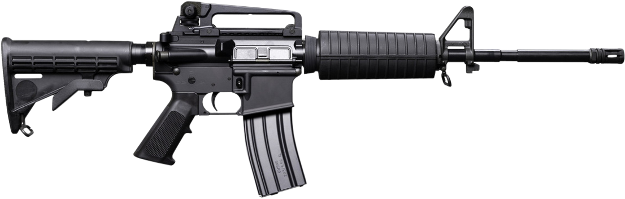 Quad Rail Patrolmans Carbine has a 16″ 4150 chrome moly-vanadium barrel is chrome-lined in both bore and chamber with A2 birdcage-type suppressor free-float quad rail fore-end. Six-position telestock for light weight and quick handling.