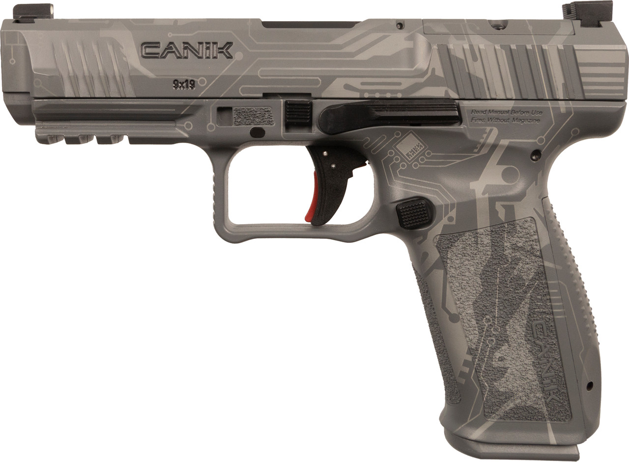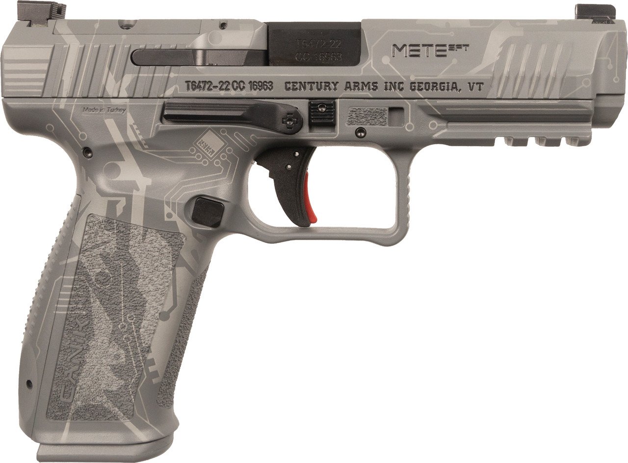 The METE SFT from Canik and Imported by Century Arms is a Professional driven design with reliability and useability as its core concepts. Starting from the inside out this pistol has nickel plated fire control mechanisms which help keep it reliable and provide that nice trigger that Canik is known for. The pistol is made with a fiber reinforced polymer frame that lends to a strong design while saving weight. This model also takes advantage of the full size increasing capacity and capability. The pistol comes with a nice steel barrel that allows for a good shooting option. The barrel rides in an optics ready slide that is precut for micro style optics and the cut sits low enough that the shooter can easily co witness the iron sights giving a precise aiming point without giving up rigidity. With all of this the pistol is also ambidextrous making it a more ergonomic shooting experience for most shooters. If you want a pistol built with ergonomics, reliability and performance in mind with the Canik USA TP9 Mete SFT.