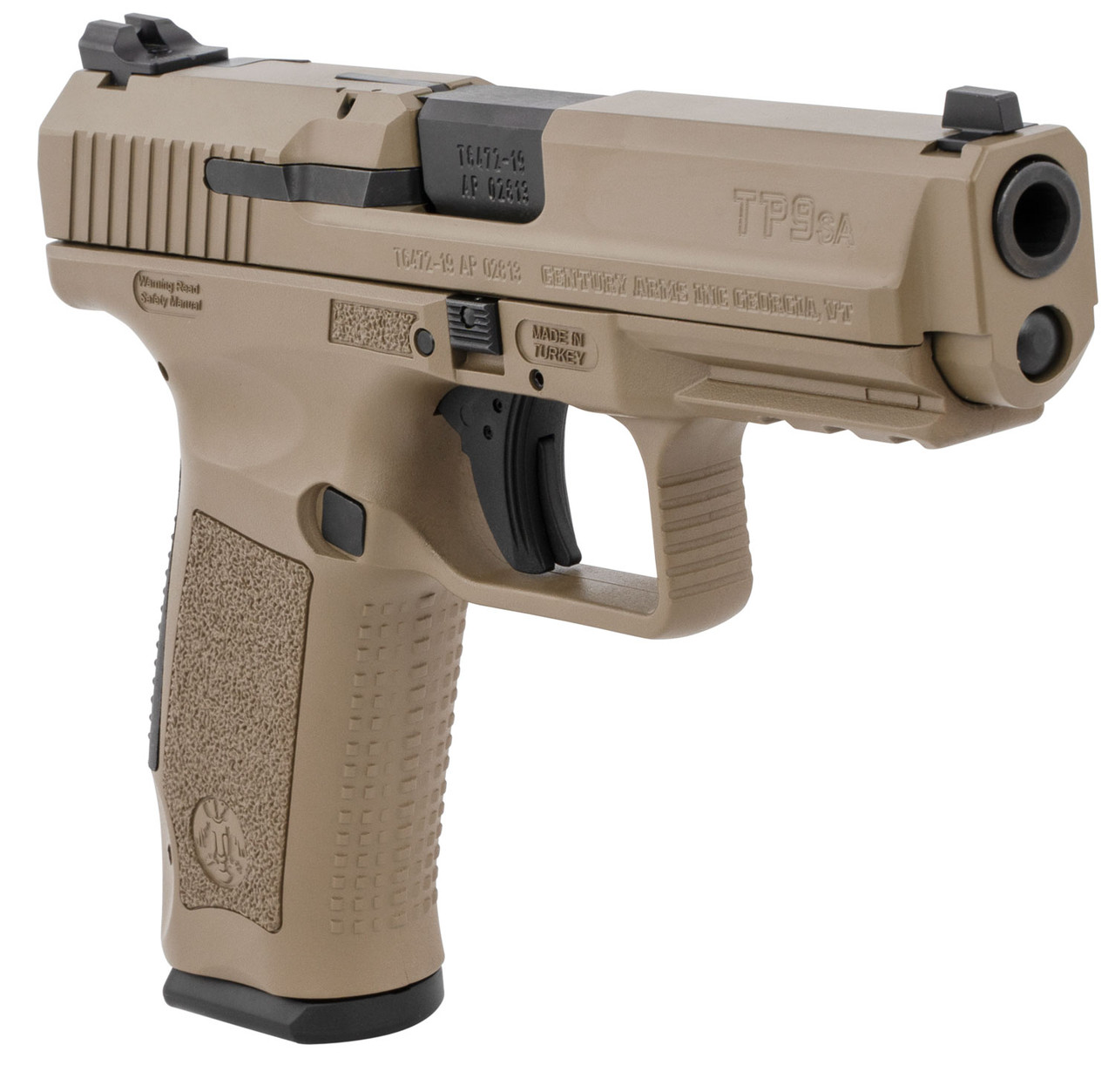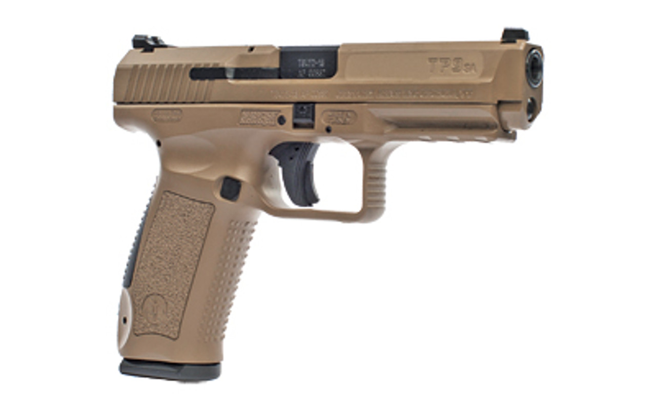 Century’s TP9SA Mod.2 comes with industry standard dovetail sight cuts that are compatible with a large variety of aftermarket sights. It features a match grade barrel, top-slide mounted disassembly button, and a striker status indicator. The pistol also has an improved single action trigger, loaded chamber indicator, and a reversible magazine release. It comes with two mags., poly holster, paddle attachment, belt attachment, interchangeable backstraps, cleaning rod, and brush.