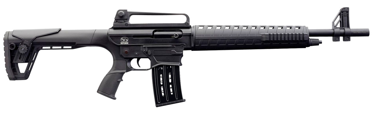 The CD Defense AR-12S Shotgun features Modified Beretta/Benelli Mobil Choke, chambered in 3in 12-gauge. It has an adjustable comb, carry handle adjustable rear sight and standard front sight and comes with a 5 round magazine.