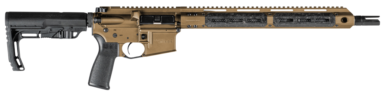 The CA 5Five6 is a serious top-tier contender in the field. The build features a forged aluminum receiver set and a Black Nitride finished BCG matched with a Christensen Arms carbon fiber wrapped barrel and a new carbon-aluminum hybrid handguard. The modern sporting rifle is also equipped with a three prong flash hider and a single stage match-grade trigger assembly. The CA 5Five6 weighs in starting at 6.3 pounds and is backed by the Christensen Arms Sub-MOA Guarantee.