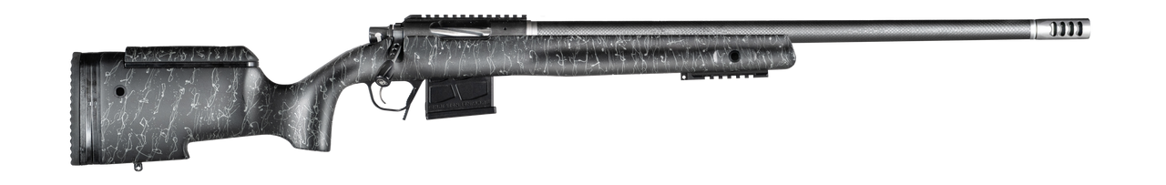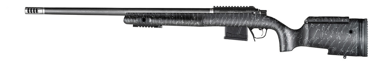 Designed to handle long range tactical and precision shooting applications, the BA Tactical is well equipped for most challenges. The Black Nitride action is machined to include a 20-MOA integral rail, fitted to a target contour Christensen Arms carbon fiber barrel, and paired with a stainless steel side-baffle muzzle brake. The adjustable tactical carbon fiber composite gunstock includes a bottom picatinny rail, five flush cup mounts, and a detachable box magazine. The BA Tactical weighs in starting at 7.4 pounds and is backed by the Christensen Arms Sub-MOA Guarantee.