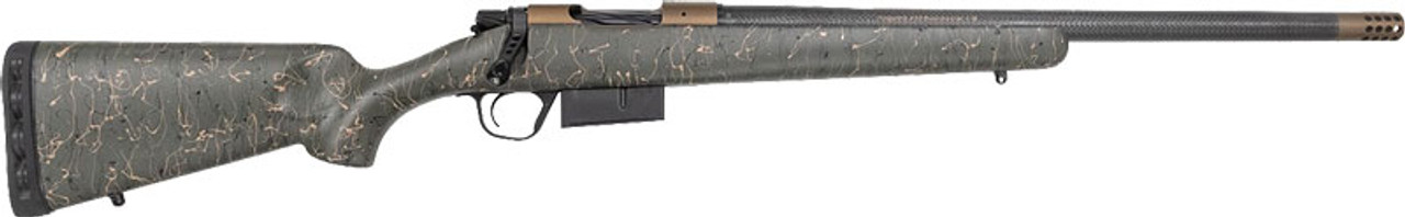 Christensen Arms Ridgeline 450 Bushmaster, 20″ Carbon Fiber/Threaded Barrel, Burnt Bronze Cerakote, Green with Black/Tan Webbing Stock, 4rd