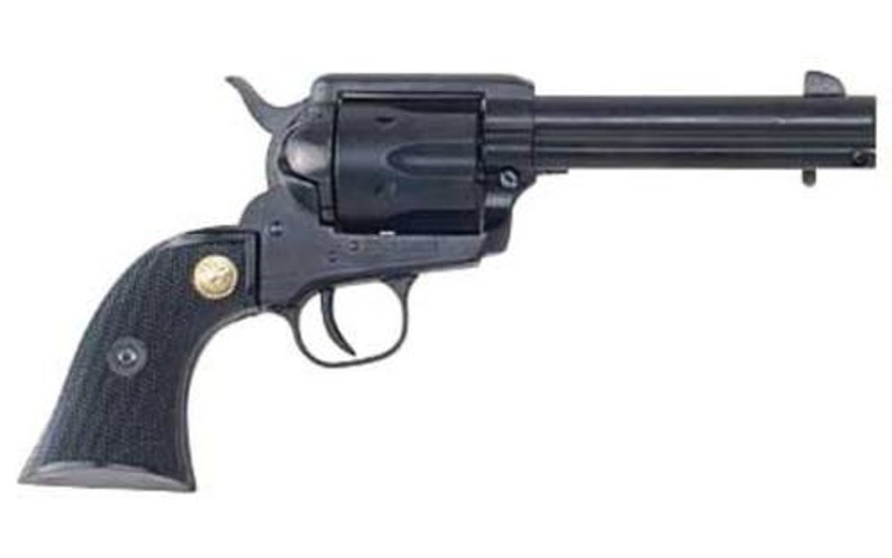 The Plinkerton is Cimarron’s entry level plinking single action revolver. It features a checkered black polymer grip with a medallion and a matte black finish.