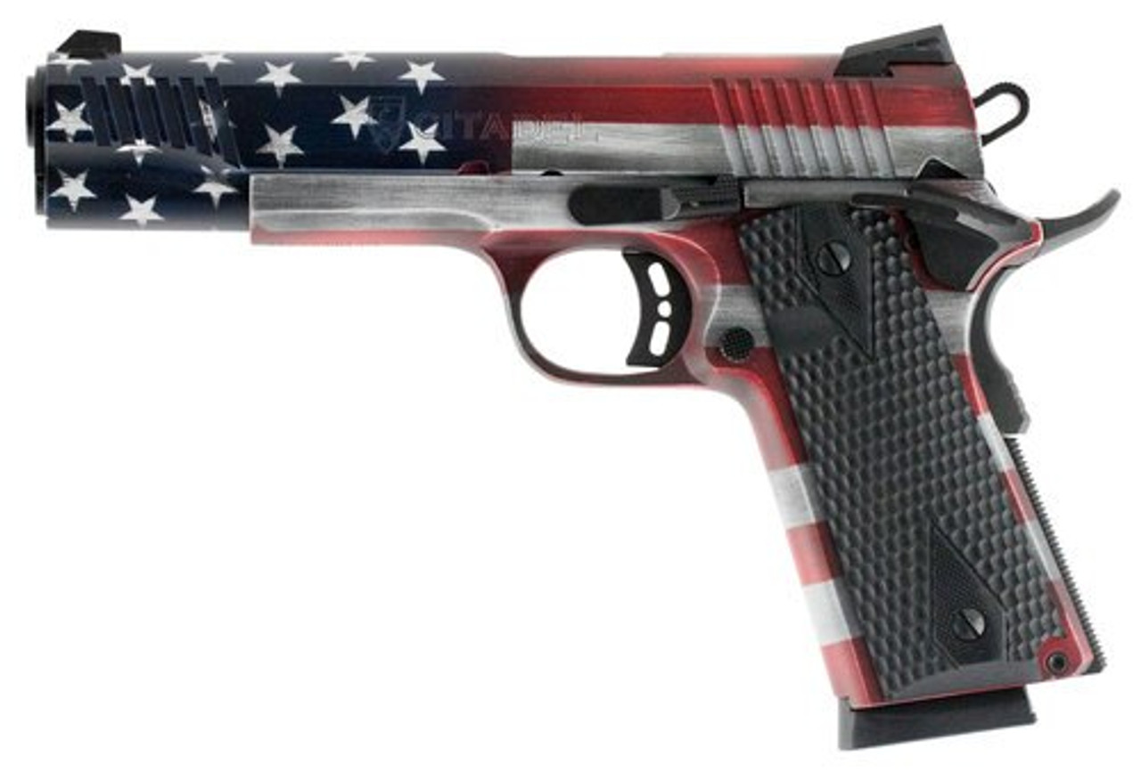 Description : Citadel USA 1911-A1 Full Size .45ACP 5 Inch Steel Barrel Novak Sights Black G10 Grips Red/White/Blue Flag Cerakote Finish 8 Round