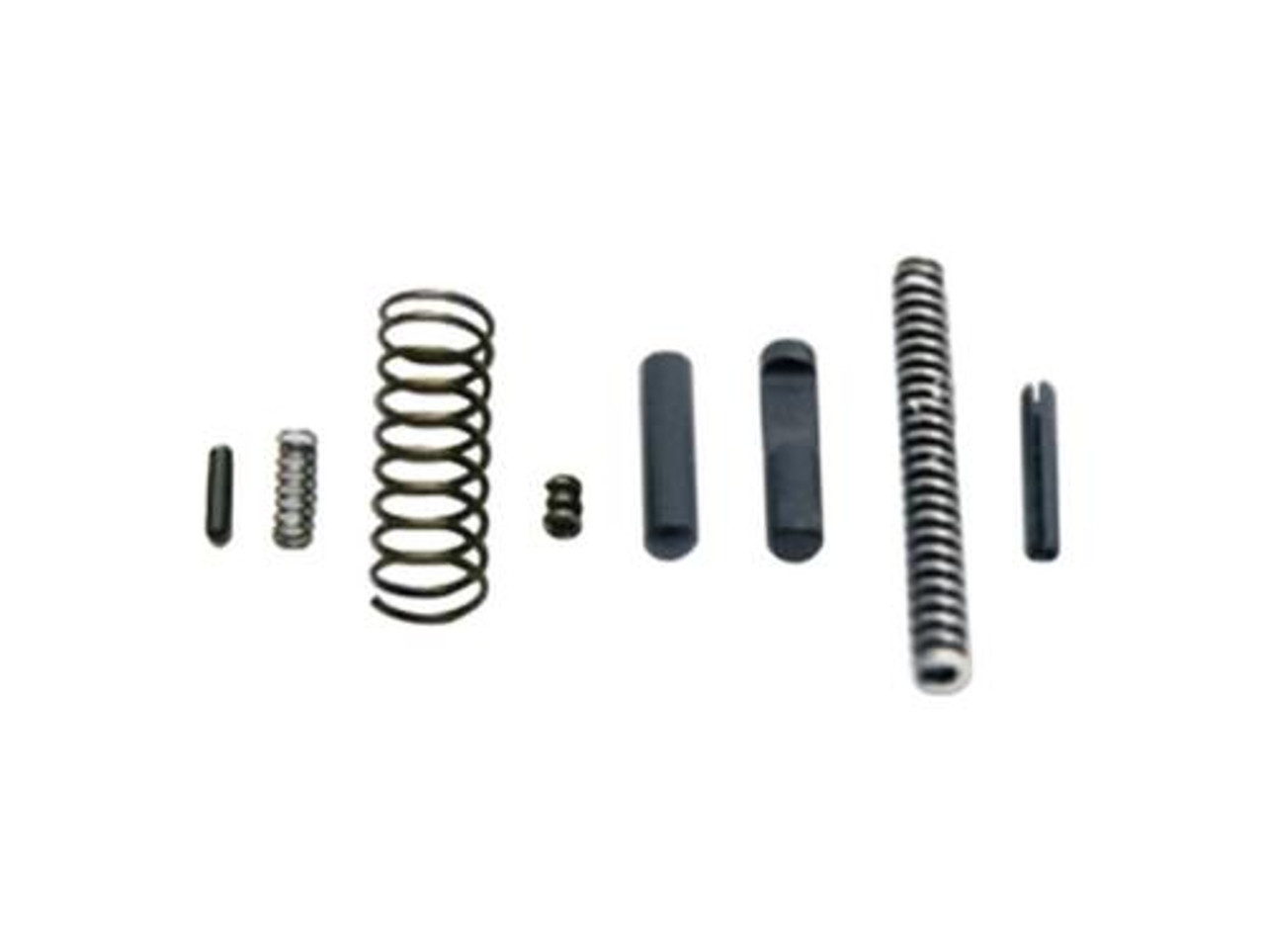 Includes: Front sight detent, front sight spring, forward assist spring, extractor spring with buffer, extractor pin, ejector, ejector spring and ejector roll pin.