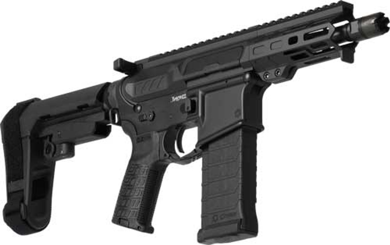 What many might consider the all-star of personal defense weapon calibers, 5.7x28mm has cemented itself as a greatly effective round with less recoil than 5.56mm at closer ranges. With just a 5 barrel this ultra-compact BANSHEE will fit almost anywhere you need it. If youre not fond of pistol magazine-fed ARs dont worry, this BANSHEE is built on our Mk4 AR15 platform which uses a standard AR15 lower receiver and our new and improved 5.7x28mm AR conversion mags. Available in a range of Cerakote finishes, the BANSHEE series represents the most innovative AR pistols and SBRs available today. From the quick deploying RIPBRACE to the stylized receivers and EML handguards, every BANSHEE is tailor-made to be the personal defense weapon you can always depend on. New EML4 handguards feature M-LOK slots at 3, 6, & 9 oclock positions and a full-length Picatinny top rail for accessories as well as an integrated handstop.