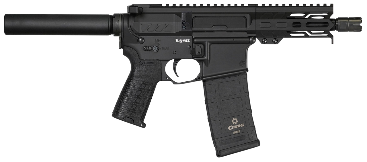 The Banshee is the featherweight of CMMG’s lineup, with the shortest barrels in their caliber. Its design gives you the firepower you need in a compact and lightweight platform, ideal for plinking, competition shooting, and serious personal protection. The Banshee features a Magpul MOE pistol grip and RML handguard with a top rail and M-Lok at the 3, 6, and 9 o’clock locations. It has a mil-spec, single-stage trigger and ambidextrous charging handle, selector and sling plate. Banshee pistols feature a premium Cerakote finish on the receivers and handguard.