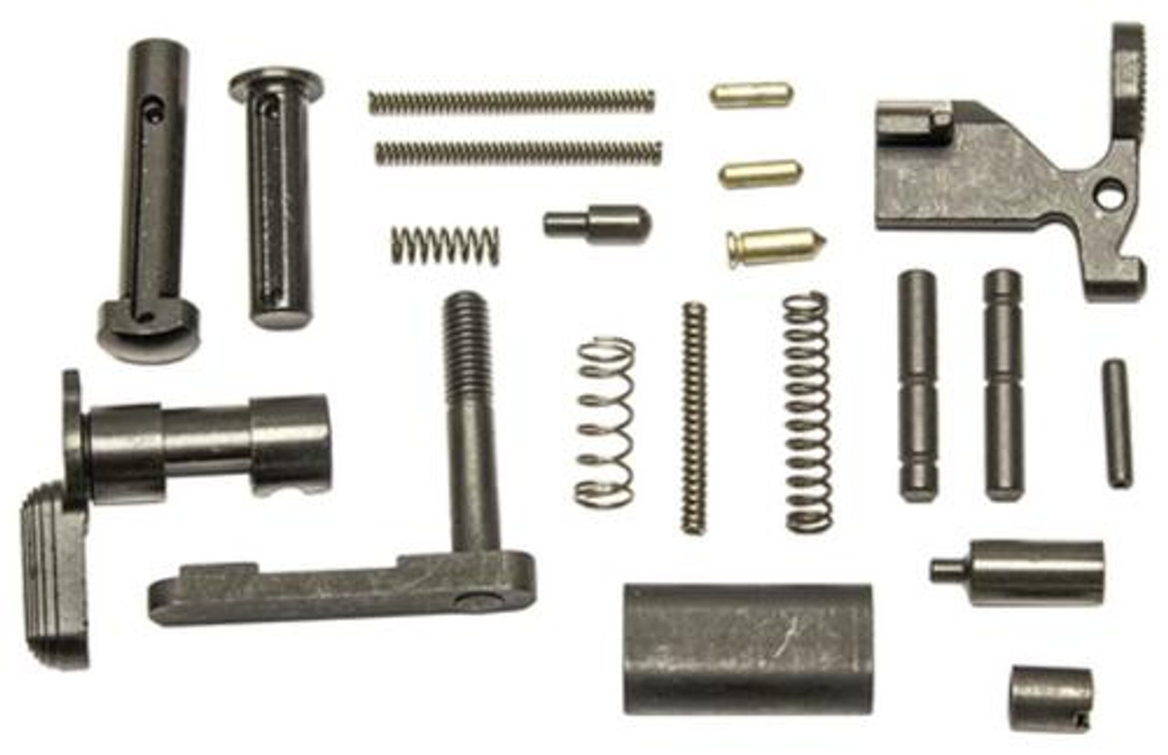 Contains the necessary parts to complete an AR15 lower receiver besides the receiver extension and butt stock. Building on the mil-spec standard, CMMG Gunbuilder’s Kits include everything you need in a new or custom lower build where you add the trigger, pistol grip and trigger guard of your choosing. Basic parts list: takedown pin, safety selector, bolt catch, receiver pivot pin, selector detent, bolt catch plunger, takedown pin detent (2), magazine catch, bolt catch spring, takedown pin detent spring (2), magazine catch spring, bolt catch spring pin, hammer and trigger pin (2), magazine release button, buffer retainer and buffer retainer spring.