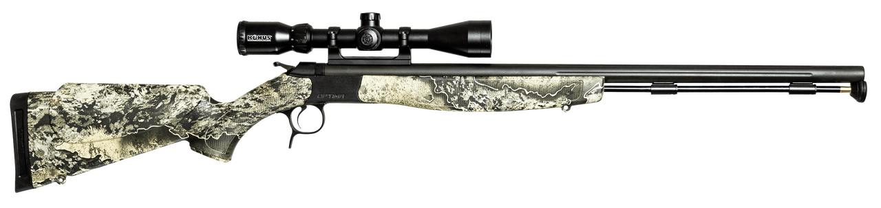 The OPTIMA V2 rifles feature the same trigger-guard actuated breeching lever, internal parts, and trigger as the ACCURA V2 models. The barrel is constructed of stainless steel and left with a Nitride finish. Add in CVAs Quick-Release Breech Plug (which is finger removable), 100% ambidextrous stock, and a CrushZone recoil pad, and youve got a gun with more quality features than any other muzzle loading rifle in its price range. It is equipped with a 24.3″ barrel. It comes standard with an Konus 3-9×40 scope, am integrated scope mount, and CVAs solid aluminum PalmSaver ramrod. The stock is done in RealTree Excape.