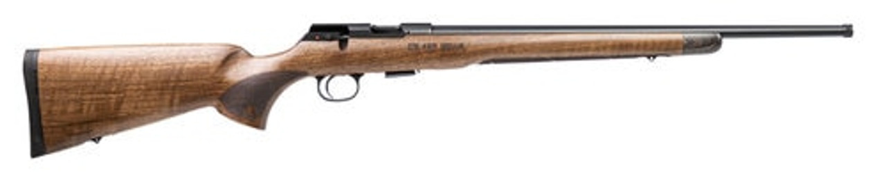With a premium Walnut stock and decorative forend tip, the Royal definitely plays the part! Intended for use with a scope, it has a high, flat American-style comb and no sights, while its forend is especially long, giving it an attractive look that harkens back to early rimfire rifles. The Royal has a muzzle threaded 1/2×20 (a European standard).