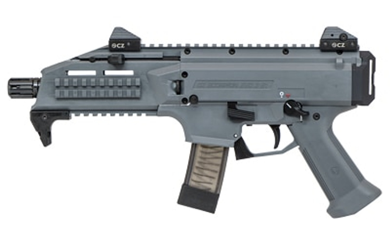 Description : CZ Scorpion EVO 3 S1 Pistol 9mm Luger 7.72 Inch Threaded Barrel Low-Profile Fully Adjustable Aperture and Post Sights Fiber-Reinforced Polymer Frame Battleship Gray 20 Round