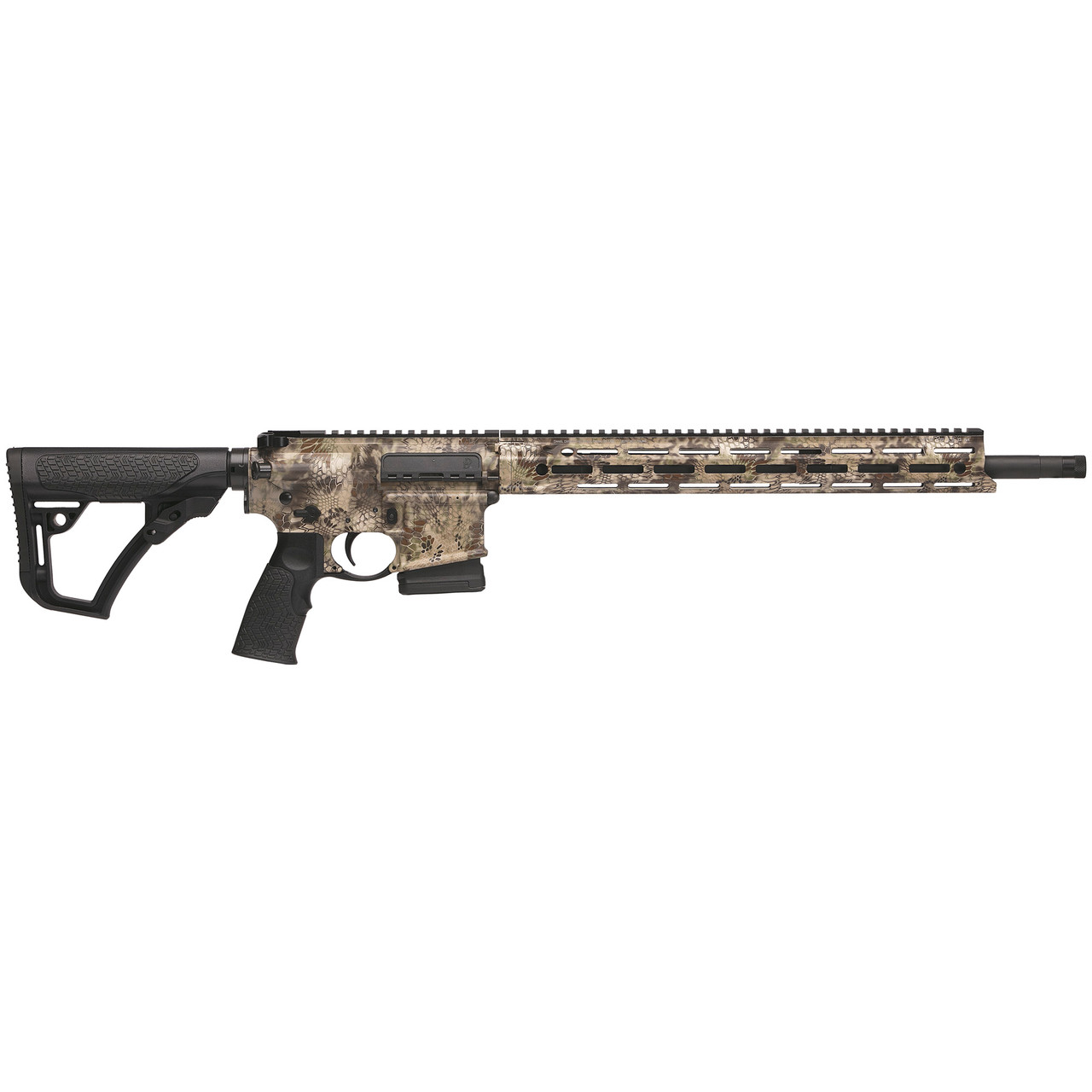 The Daniel Defense line of Hunter rifles takes the best aspects of Daniels proven designs and tailor fits them to the modern sportsman. Built around an 18 Cold Hammer Forged barrel, the Hunter 5.56 offers precision and accuracy with a wide variety of projectiles. Shielding the barrel and mid-length gas system is the MFR 15.0 free-floating handguard. With a picatinny rail on top and M-LOK attachment on the sides and bottom, there is plenty of room for accessories. The barrel is threaded in 1/2×28 TPI and capped with a knurled thread protector which can be easily removed should you want to attach a suppressor or other muzzle device. The Hunter 5.56 comes from the factory with a Geissele Super Semi-Automatic, 2-stage trigger and an ambidextrous safety selector. The independent ambi GRIP-N-RIP Charging Handle is engineered for suppressed fire, with anti-gas features that redirect gas flow upward and away from the face and operator. The Hunter comes standard with Daniel Defense Buttstock and Pistol Grip and is finished in a vivid hydro-dipped Kryptek Highlander camo pattern.