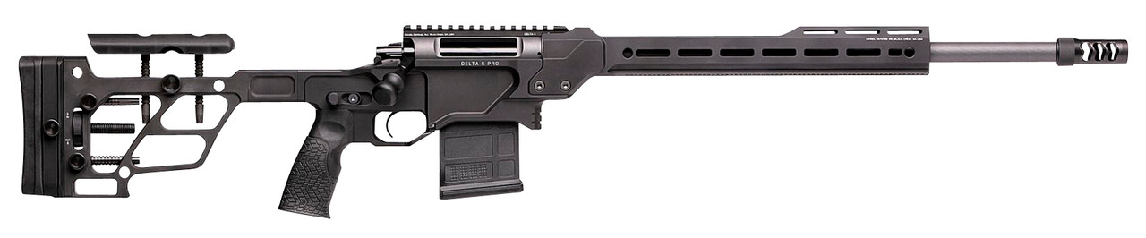 Daniel Defense DELTA 5 PRO features an interchangeable barrel, three-lug bolt with a 60-degree throw and floating bolt head, 5/16-24″ removable bolt knob, Picatinny scope base 20 MOA/5.8 MRAD of elevation with four #10-32 bolts, M-LOK attachment at six positions along forend with one point on bottom of buttstock, Ten M-LOK QD sling points, Integral Arca Lock (RRS Spec) continuous along the entire lower portion of rail, compatible with an extended pic rail and is compatible with night vision and thermal optics, allows for lower height over bore even with scopes with large objective lenses, AR-15 Grip attachment interchangeable to accommodate the users preference of aftermarket grips, left/right adjustability to accommodate user’s preference and adjustable cheek riser. Includes Magpul PMAG 10 7.62 AC and Daniel Defense Full-Latch Impact plastic case.