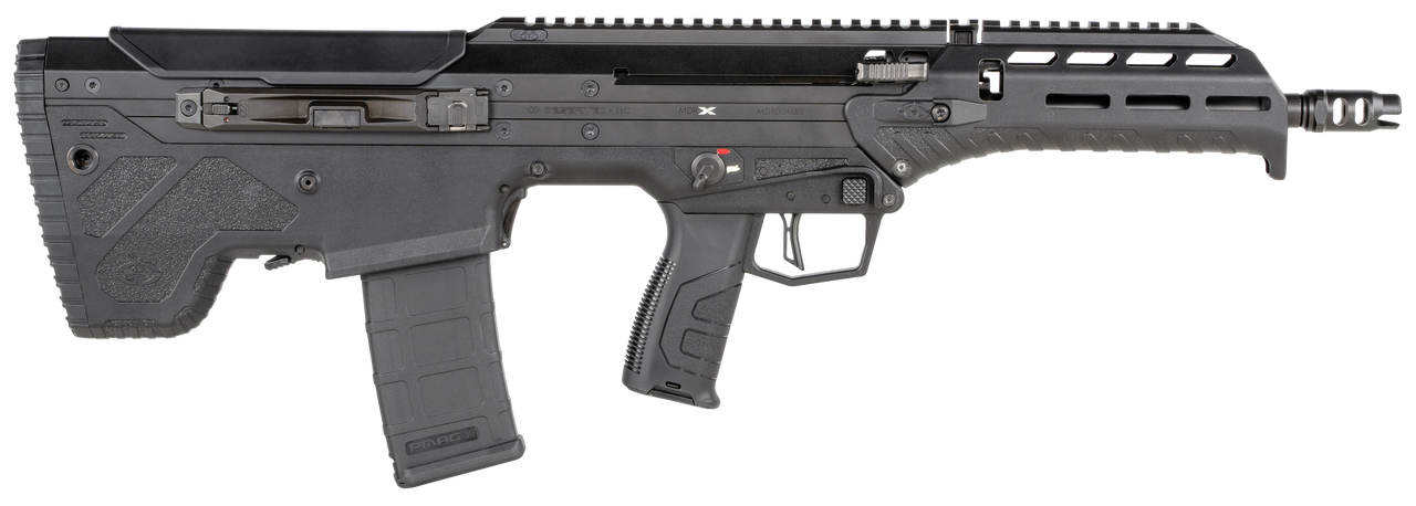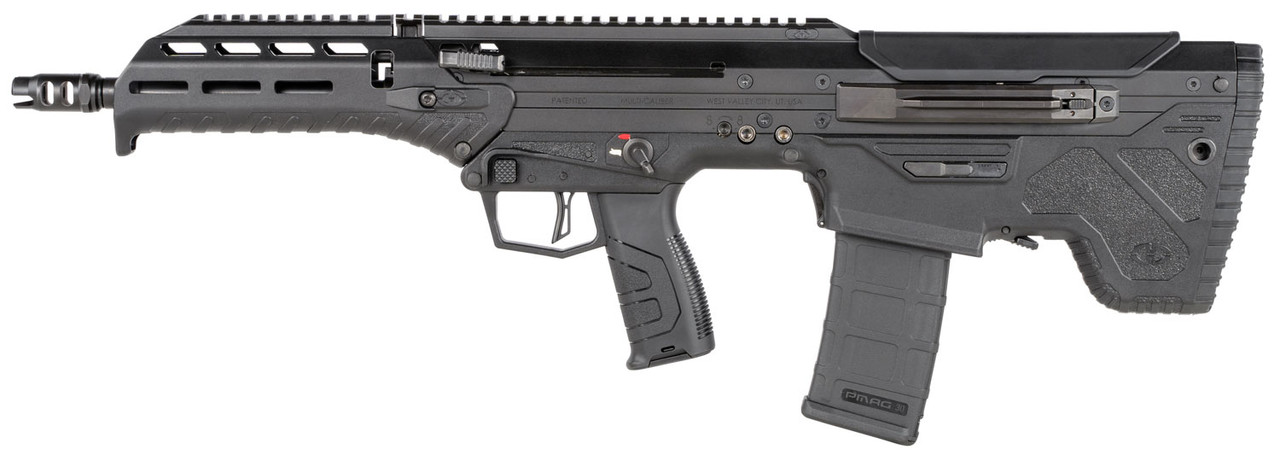 The MDRX (Micro Dynamic Rifle Xtreme) is designed for maximum concealment and ambidexterity, allowing operators to return fire at any angle without exposing unnecessary parts of their body to threats. It features upgraded polymer resin to better withstand high impact falls, and improved gas block drainage to ensure maximum reliable performance in water and mud submersion testing. The trigger pull and creep have been reduced to allow for more accurate shooting capability. The flash suppressor was also designed to reduce the flash better than current options found on the M4. Desert Tech’s patented forward-ejection system allows operators to quickly transition between shoulders without any need to reconfigure the rifle. Now operators can respond to threats more quickly and maintain full lethality against threats without sacrificing speed or power.