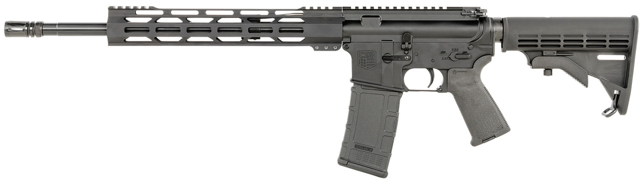 This DB15 model features a carbine-length, 4150 CrMov black nitride barrel with an A2 flash hider. Both upper and lower receiver are machined from 7075 T-6 aluminum. It also has a 12″ M-lok rail, MOE grip, 6-position stock, and a standard trigger.