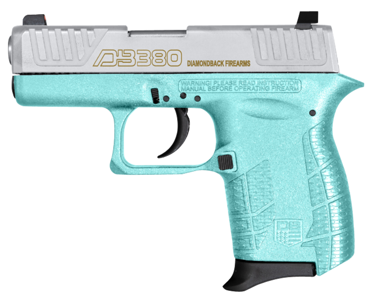 Diamondback’s DB380 lightweight micro-compact pistol was designed with safety in mind. The DB380 features a lasered logo on the slide; “ZERO-Energy” striker firing system with a mechanical firing pin block; steel magazine catch; real windage-adjustable sights; slide will accept Glock 43 style sights; steel trigger with dual connecting bars; FEA (Finite Element Analysis) designed slide and barrel is stronger than any comparable firearm. The slide, barrel and internal parts features a corrosion resistant coating.
