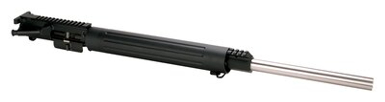 A3 Upper receiver with Teflon coating. Twenty four inch 416 stainless steel Bull barrel. Chambered 5.56/.223. Aluminum free float tube. All Bull barrels are now target crowned. Bipod stud is installed on all barrel assemblies. Bolt carrier assembly included.
