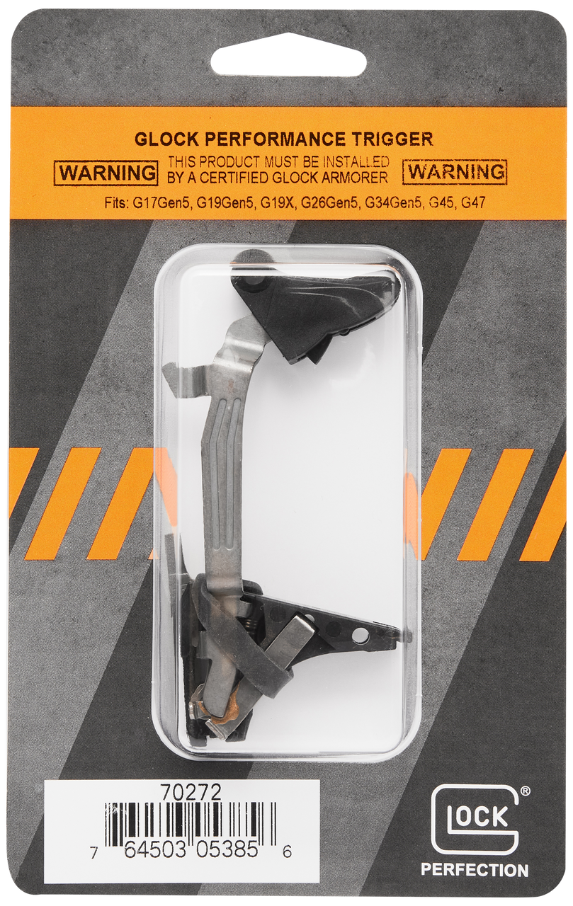 The GLOCK Performance Trigger delivers enhanced trigger pull qualities and ergonomics utilizing a newly designed flat-faced trigger. The GLOCK Performance Trigger provides better trigger control resulting in improved shootability and accuracy while maintaining the safety features of the GLOCK Safe Action System. Fits G17 Gen5, G19 Gen5, G26 Gen5, G45, G47, G19X, G22 Gen5, G23 Gen5, and G27 Gen5.