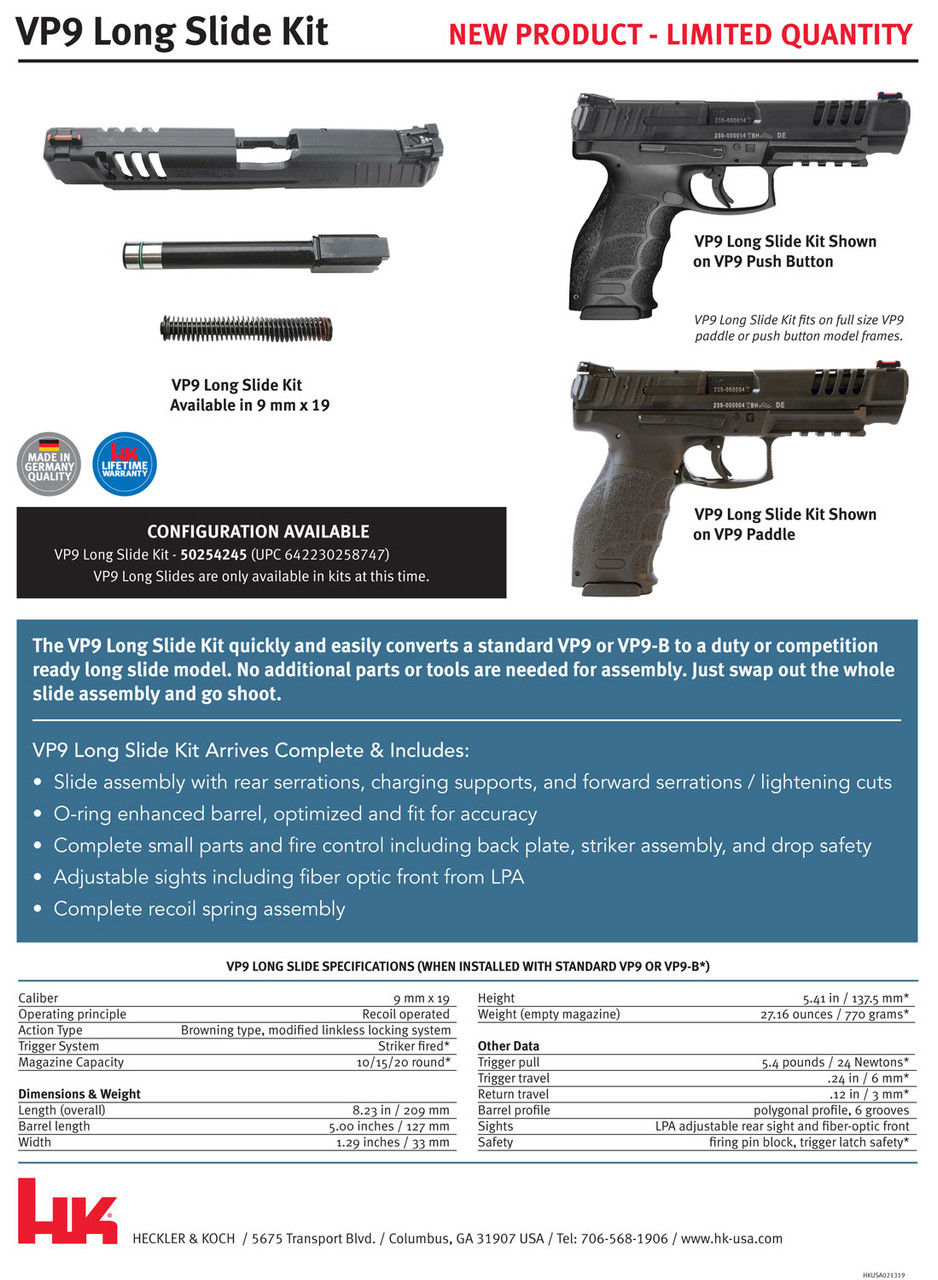 HK VP9 Long Slide Kit, 9mm, Black