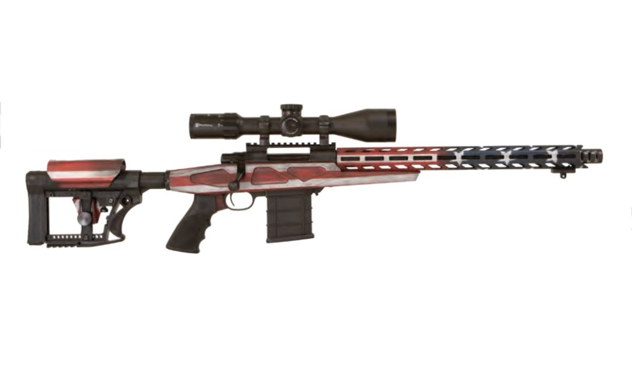 Howa APC Flag Chassis Rifle 6.5 Creedmoor Scope Combo, 16″ Threaded Barrel, 4-16x50mm Nikko Stirling Scope, Flag Finish, 10rd