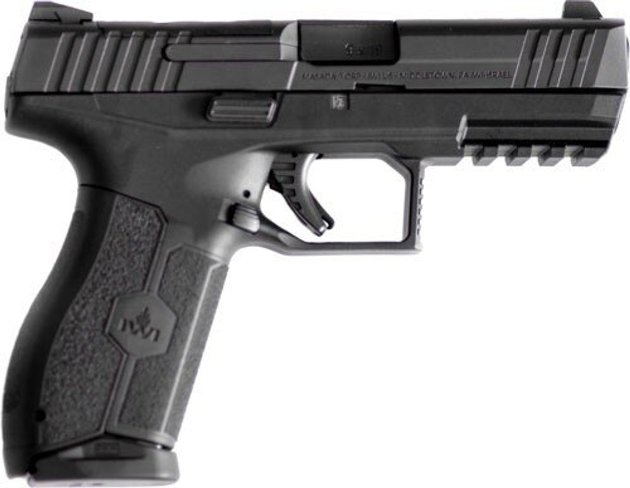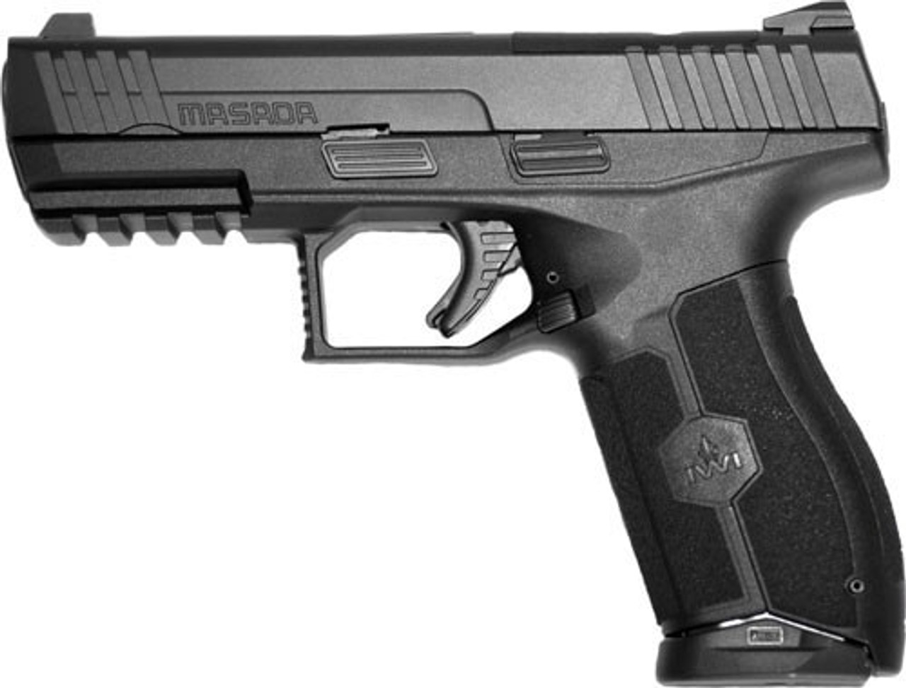 IWI MASADA 9mm polymer framed striker-fired pistol features a low profile barrel for reduced perceived recoil. Fully ambidextrous controls and enhanced ergonomics which provide a natural and instinctive pointing grip angle, three interchangeable wrap around back-straps coupled with the deep beavertail enabling the MASADA pistol to fit a wide variety of hand sizes, 3 Interchangeable wrap around back-straps.
