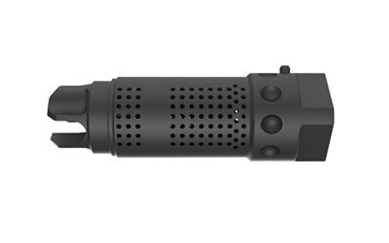 The KAC 7.62 MAMS (Multi-Axis Muzzle Stability) Brake has been engineered to increase controllability, to significantly reduce felt recoil, and to help mitigate a rifle’s flash signature as compared to traditional muzzle brake designs. The MAMS is a neutral bias brake that combats both muzzle rise and drift upon firing. Depending on the gun’s barrel length, it can reduce felt recoil in a 7.62x51mm gun by as much as 52 percent. The 7.62 MAMS is compatible with KAC’s Quick Disconnect Coupling (QDC) 7.62mm sound suppressor line, and comes complete with a 7-piece shim kit and installation instructions.