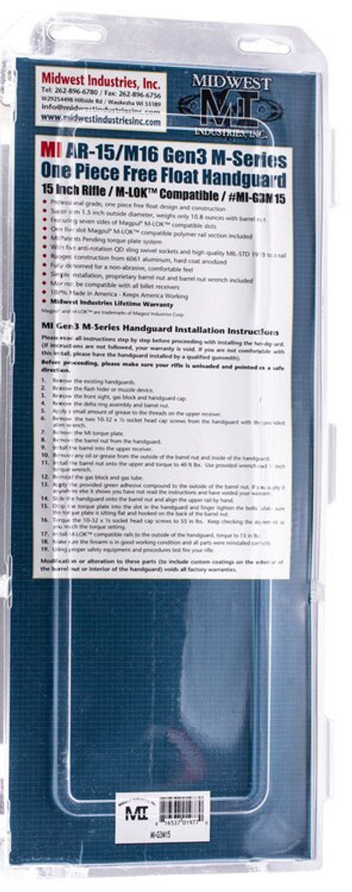 Midwest Gen 3 M-Series, Handguard, Fits AR Rifles, 15″, M-LOK, Black