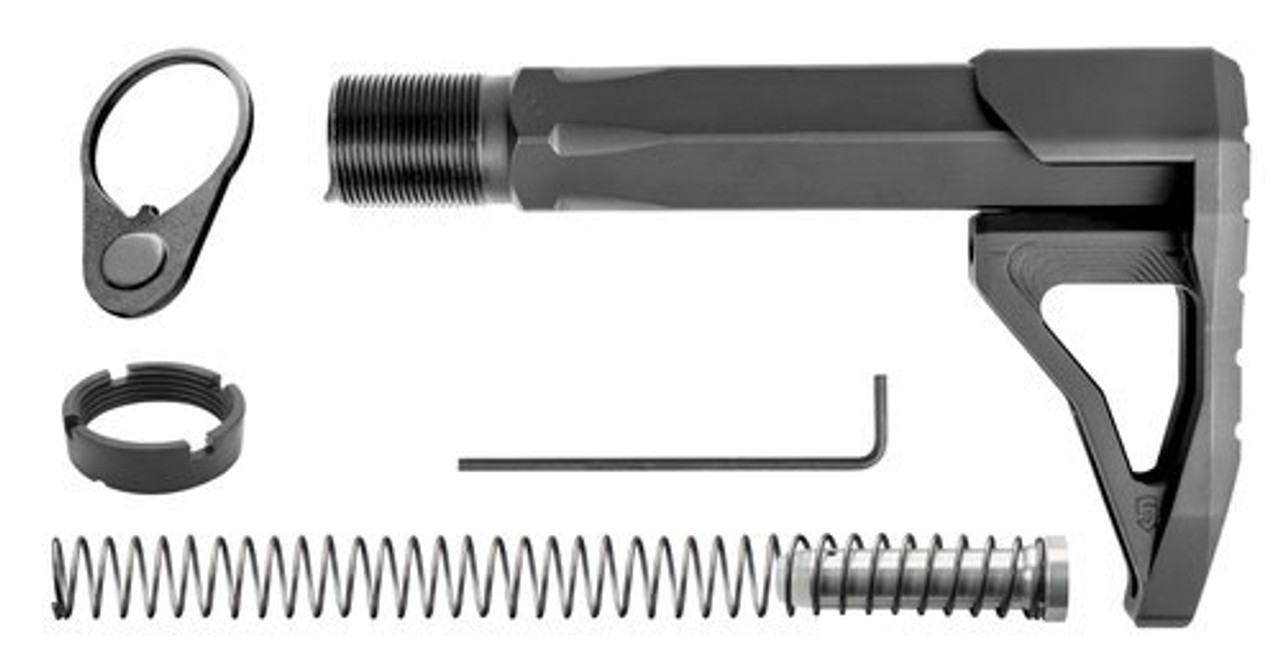 The Phase 5 Carbine Mini Stock Assembly (CMSA) is a combo kit featuring Phase5’s Universal Mini Stock (UMS) and HexOne buffer tube for an excellent compact fixed stock solution. The UMS is also compatible with a number of other buffer tubes, including Mil-spec carbine receiver extensions and most round tubes, it was designed to complement the sturdy HexOne buffer tube. The UMS and HexOne are precision machined in house from USA sourced raw billet aluminum. The HexOne buffer tube is cut from 7075-T7 and the UMS is 6061-T6. The buffer tube features a hexagonal design that is much thicker and rugged than a mil-spec receiver extension tube making it perfect for 5.56 NATO, 300 BLK, or even calibers like 7.62×39 and .308. It will also work with pistol caliber carbines such as 9mm, 40 S&W, and 45 ACP, but you may need a different buffer and/or spring. The UMS offers a smaller footprint and bottom curve which makes for a far superior anchor of the stock on the chest. This allows an operator to get in and out of position with greater of ease.