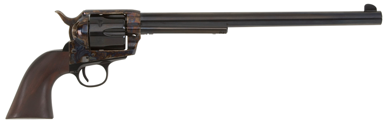 The 1873 Great Western Buntline features a deep color case hardened finish, smooth action, and walnut grip making this pistol a handsome addition to the finest gun collections. The Colt Buntline is a long barreled variation of the Colt Single Action Army revolver.