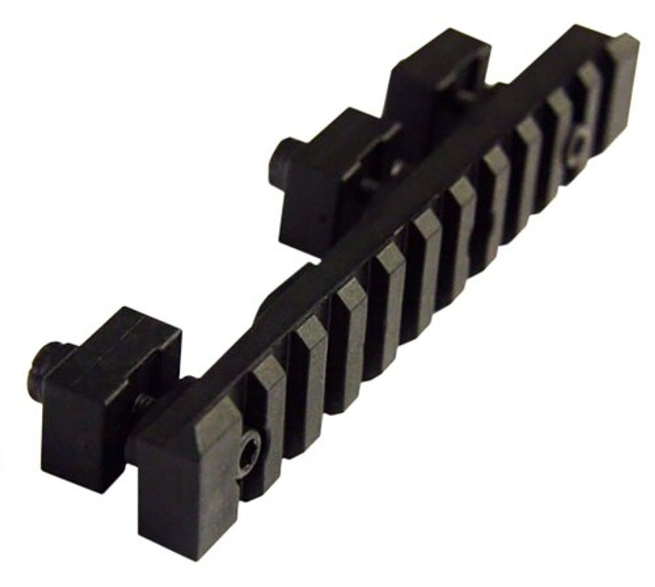 ProMag’s Archangel OPFOR Picatinny Rail is an available accessory for the forend of the Mosin-Nagant Precision Rifle Stock, and is made from the same proprietary polymer compound as the stock. Utilizing the ventilation holes on the underside of the forend, the rail mounts securely, and is designed to be parallel to the barrel in the horizontal plane, allowing for a more precise mounting of lasers or lights. At 5-inches long, it has ample space for a rail-mounted bipod, along with that laser or flashlight. If your Mosin rifle/carbine requires the use of the available barrel-tensioning device, provision has been made to allow adjustment of the tensioner with the rail in place.