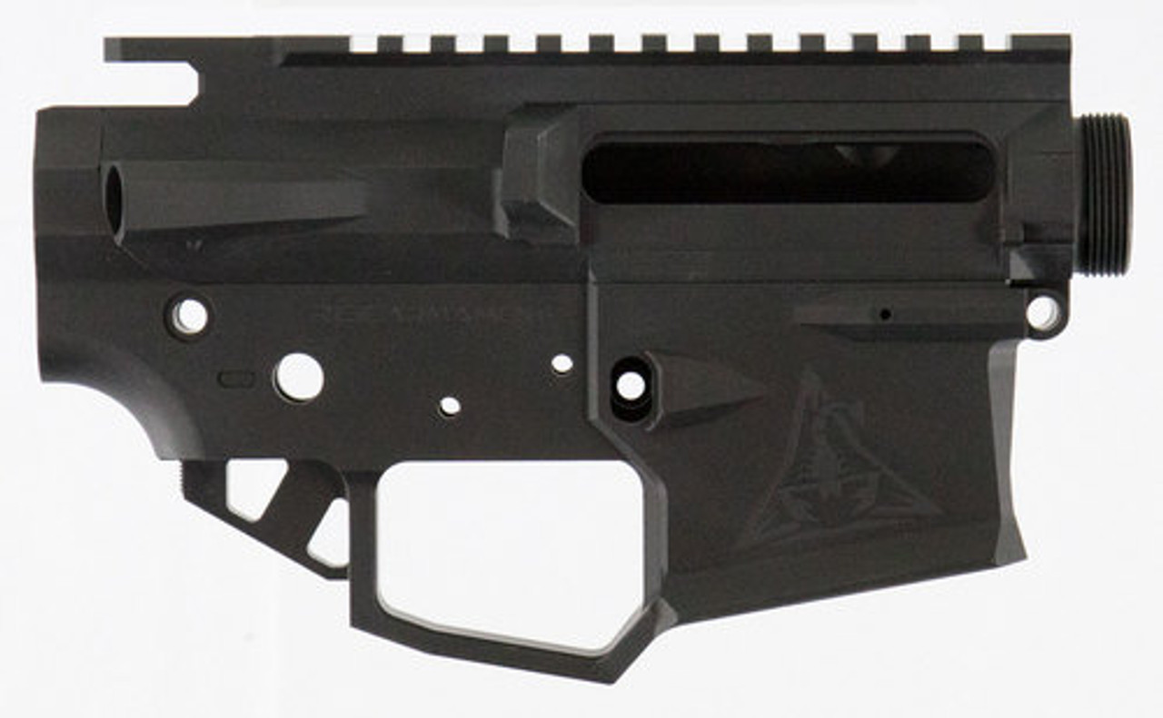 The Rise Armament Ripper billet matched upper and lower receivers boast a sleek, streamlined design that emphasizes form as much as function. Features include a flared magwell and oversized trigger well. It is precision CNC machined from 7075-T6 aluminum and is Mil-spec component compatible. Included is a upper tension screw, bolt catch screw, and forward assist screws.