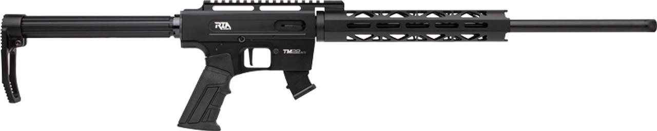 The Rock Island Armory TM22 is 7075 Airplane Grade Aluminum from end to end. Compatibility with AR type grip, commercial buffer tube adapter, top rail, and forend that takes most aftermarket accessories, this rifle is built for all ages, all types of scenario. As ambi as it gets, comes stock with right handed controls but this rifle has it all, includes set to convert from right handed to left handed to make it ready for all scenarios. This 18″ barrel 34″ Overall length 22lr rifle was built with no shortcuts, comes with 2 10rd aluminum magazines.