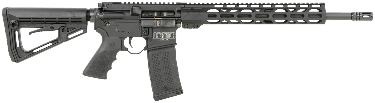 The LAR-15M Operator ETR Carbine is a 16″ 5.56 rifle with a 13″ lightweight M-Lok handgaurd, featuring an extended charging handle. Includes Case