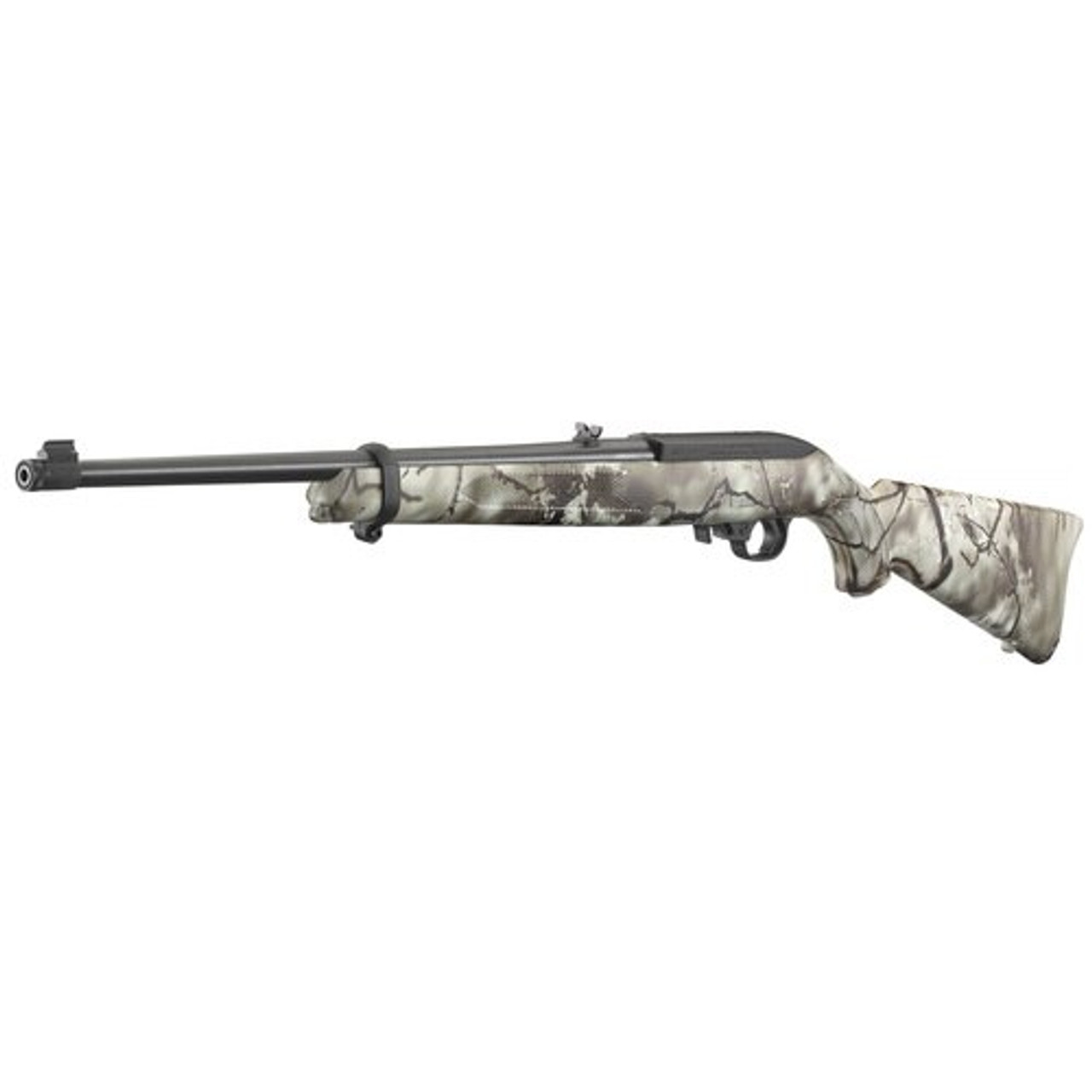 Ruger, 10/22 Carbine, Semi-Automatic Rifle, 22 LR, 18.5″ Threaded Barrel, Satin Black Finish, Alloy Steel, Go Wild Camo Rock Star Synthetic Stock, Adjustable Rear and Gold Bead Front Sight, 10Rd, Includes 40″ Soft carry case