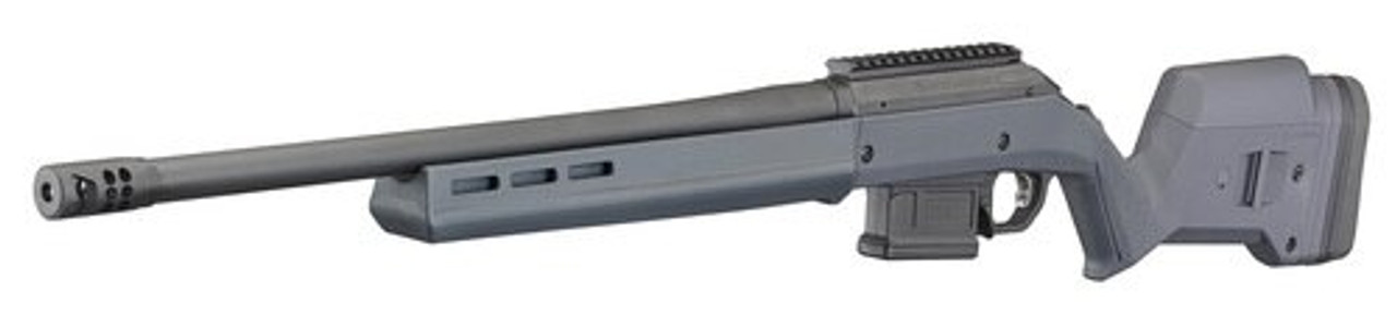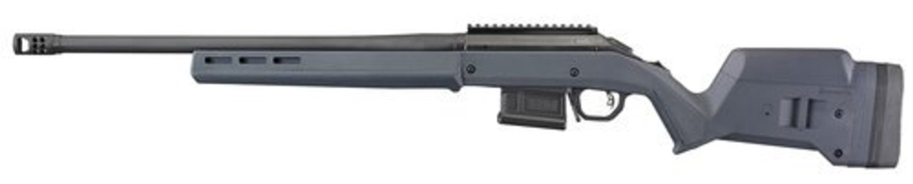 The Ruger American Rifle Hunter offers minute of angle accuracy that can make every hunt a success. The one-piece, three-lug bolt with 70 degree throw provides ample scope clearance and utilizes a full diameter bolt body and dual cocking cams for smooth, easy cycling from the shoulder. Features a Magpul short-action stock featuring fully adjustable length of pull and comb height with enhanced ergonomics, factory-installed one-piece Picatinny scope base and the heavy-contour (.850″ at the muzzle) barrel features a Ruger Precision Rifle Hybrid Muzzle. Includes- one Magpul PMAG5 7.62 AC magazine for reliable detachable box magazine compatibility.