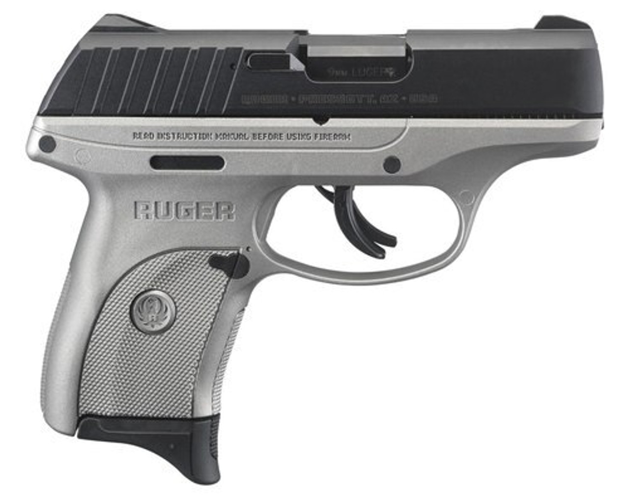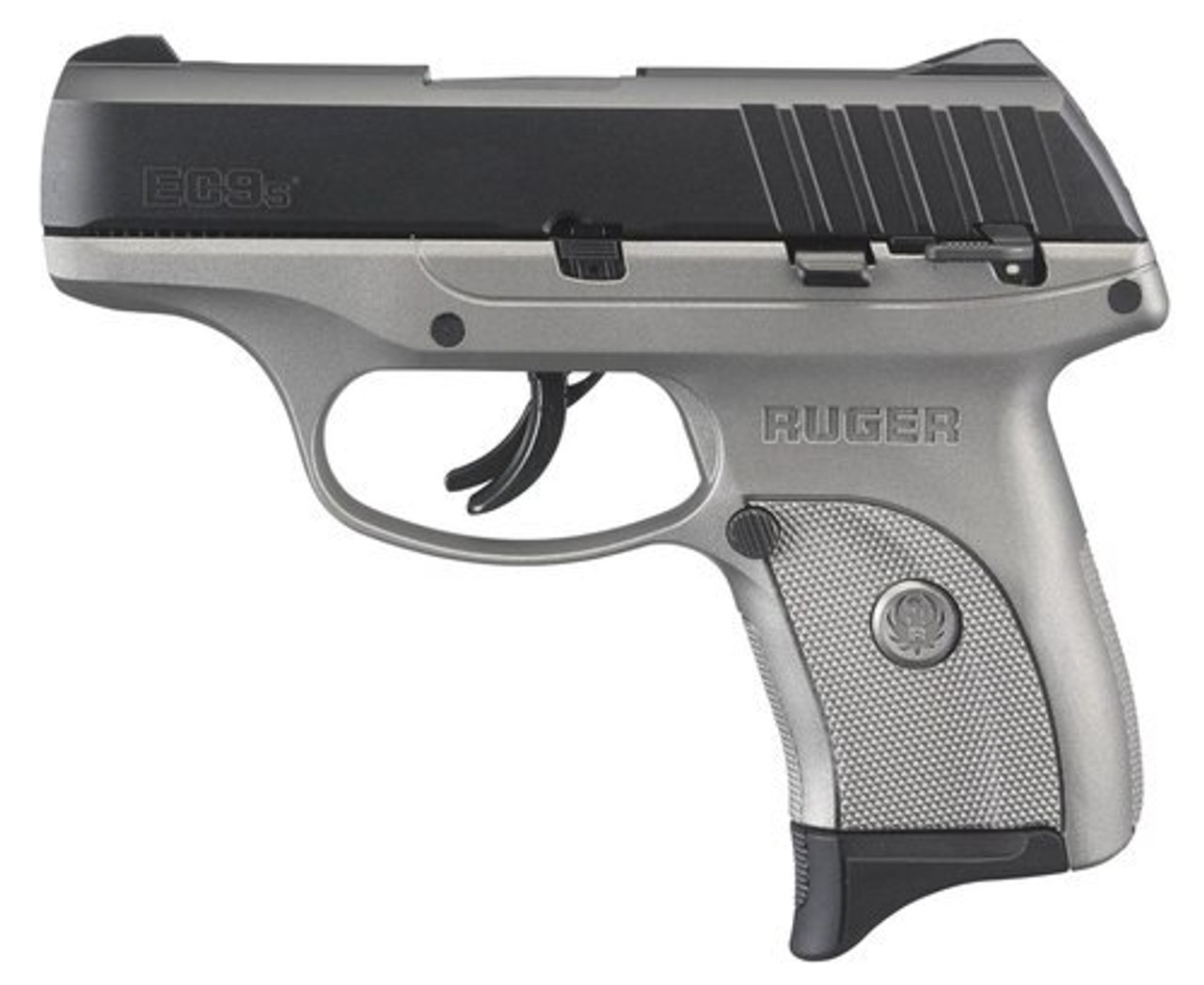 Ruger EC9 is slim, lightweight and compact for personal protection. Striker-fired featuring a short, light, crisp trigger pull for faster, more accurate shooting. Rugged construction with through-hardened slide and one piece, high performance, glass filled nylon grip frame. The checkered grip frame provides a secure and comfortable grip. Includes finger grip extension floorplate that can be added to the magazine for comfort and improved grip. Safety features include integrated trigger safety, manual safety, magazine disconnect and an inspection port that allows for visual confirmation of a loaded or empty chamber. Sights are machined integrally with the slide and feature glare-reducing, rear face serrations. Also includes one, 7-round magazine.